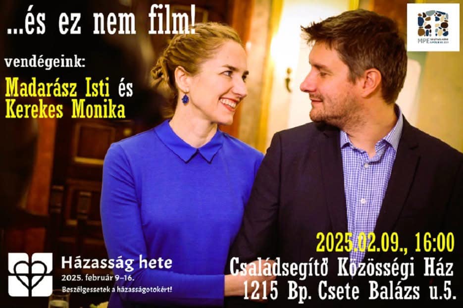 A Házaság Hete alkalmából 2025. február 09.-én, vasárnap 16:00 órától 18.00 óráig beszélgetés Madarász Istivel és feleségével, Kerekes Monikával a Családsegítő Közösségi Házban.