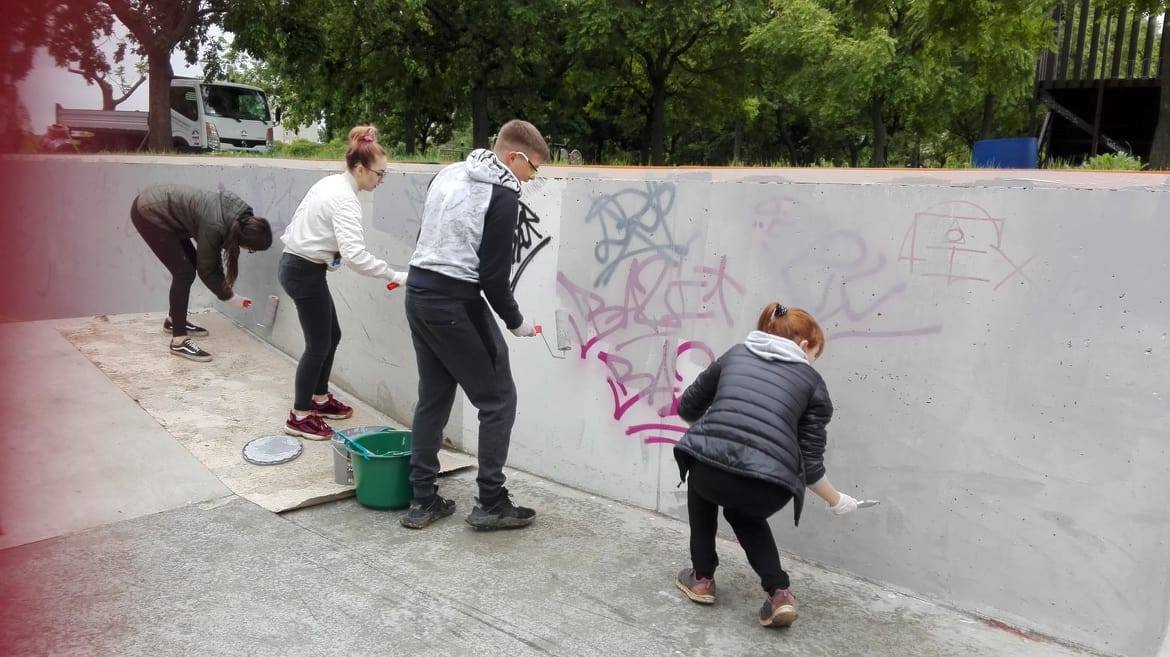 Sajnos az időjárás nem volt túl kegyes, az eső miatt körülbelül két órát tudtak dolgozni a diákok öt helyszínen: Rákóczi-kert, Daru-domb, Kis-Duna-öböl, Akácfa utcai kiserdő, Szent Imre tér. A Városgazda Zrt. munkatársai biztosítottak számukra eszközöket szemétszedéshez, festéshez, zöldterület-rendezéshez; és kedvesen, türelemmel foglalkoztak a „Vásárhelyis” tanulókkal.