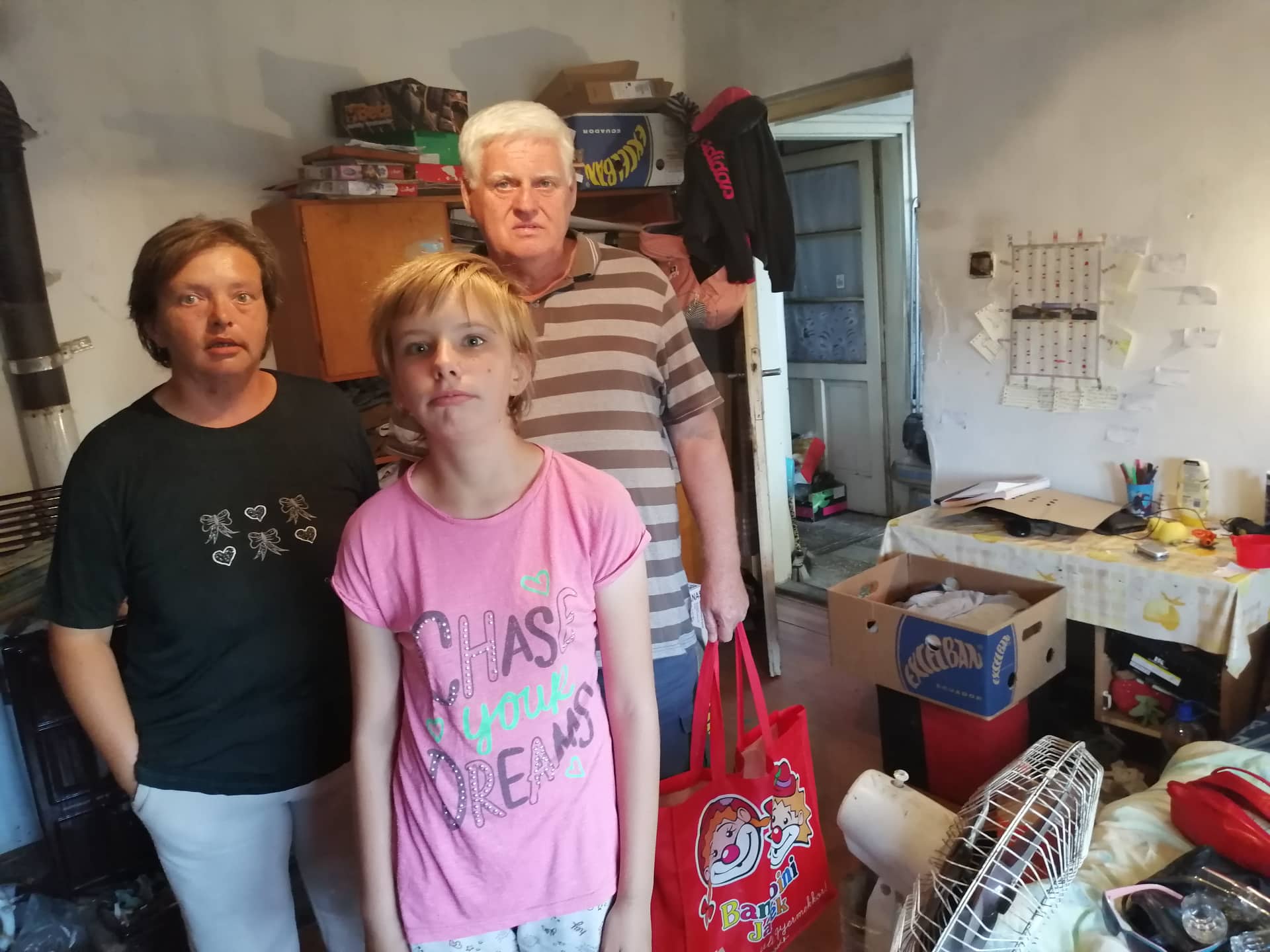Munkatársaink egy rászoruló családot látogattak meg. Az apuka nyugdíjas, súlyos beteg, az anyuka közmunkás, nagy-nagy szükségben élnek. Iskolaszereket, az egész család számára ruhaneműt, cipőt, tisztálkodási- és illatszereket, konyhai eszközöket, botmixert ajándékoztunk.